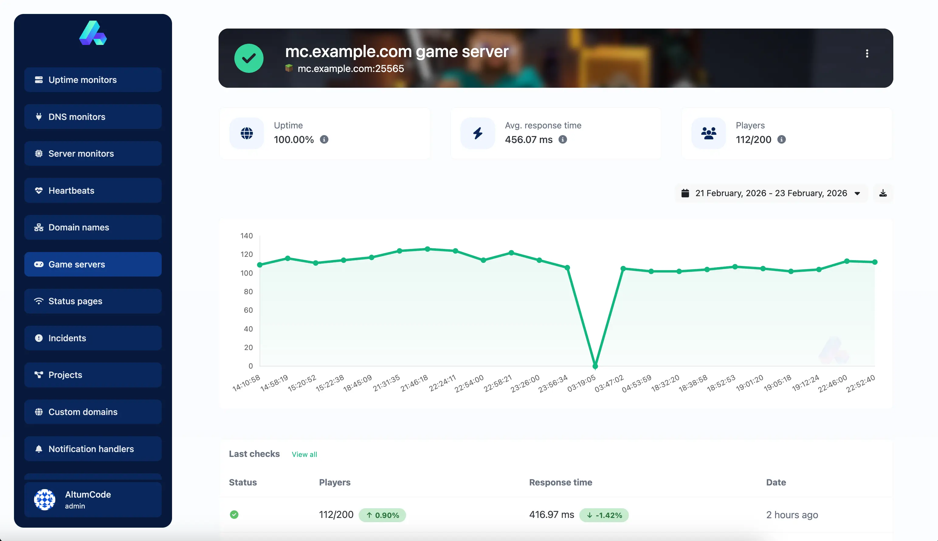 Monitor game servers for player activity, performance and uptime.